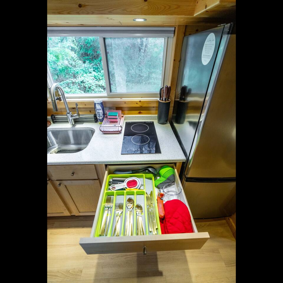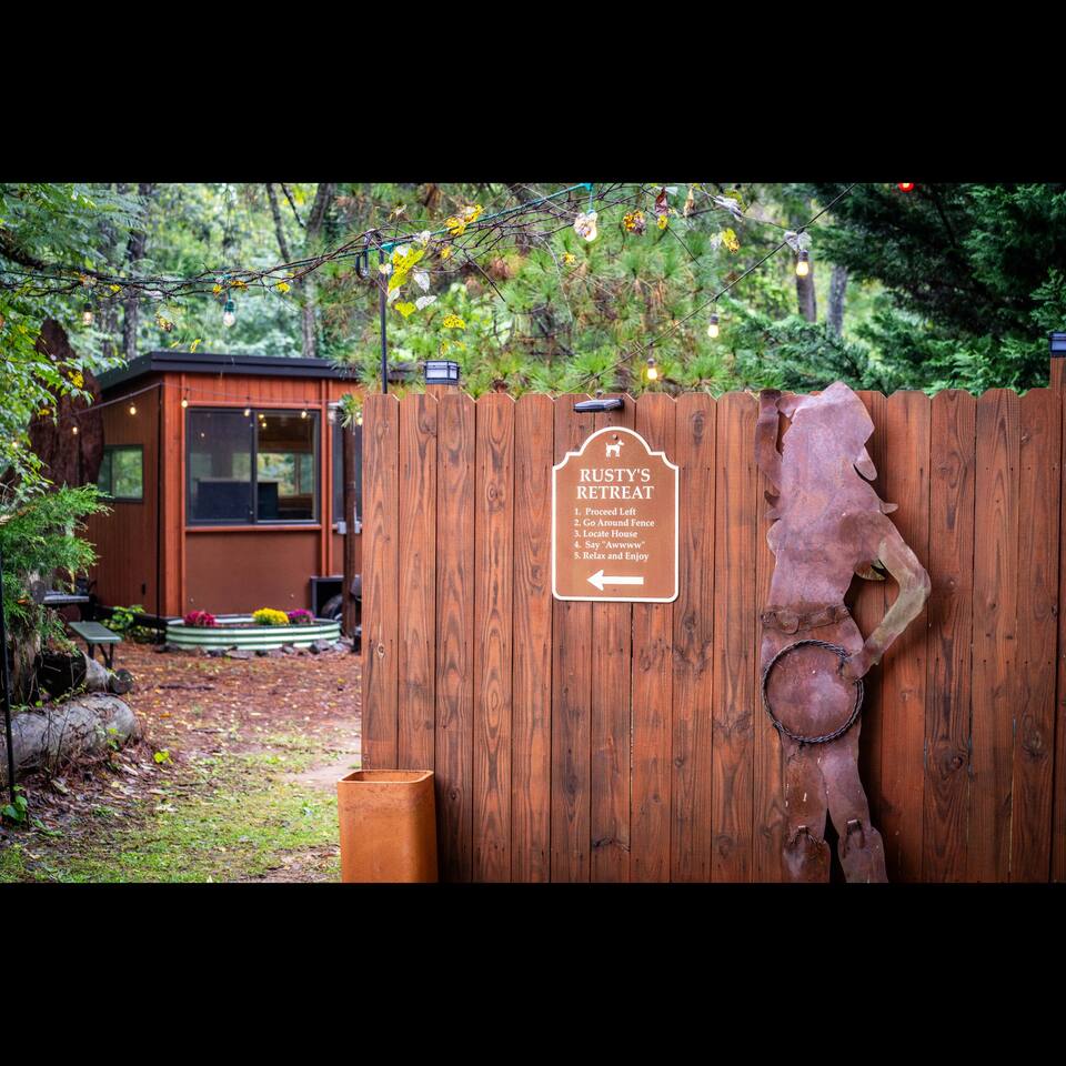 Rusty' Retreat is nestled on the backside of our primary AirBnB property, as well as another luxury tiny home. This is primarily so that the house can enjoy high-speed internet and also be plumbed into the property's septic system (don't worry, you'll have a flushing water toilet just like at home). The property is generally very quiet during the week as the main house is usually only occupied on weekends. Bringing an unauthorized pet will result in an additional $150 cleaning fee (what our cleaning crew charges to us). In the warmer months, we require guests to the main house to adhere to a 10pm quiet hour requirement for their outdoor space.