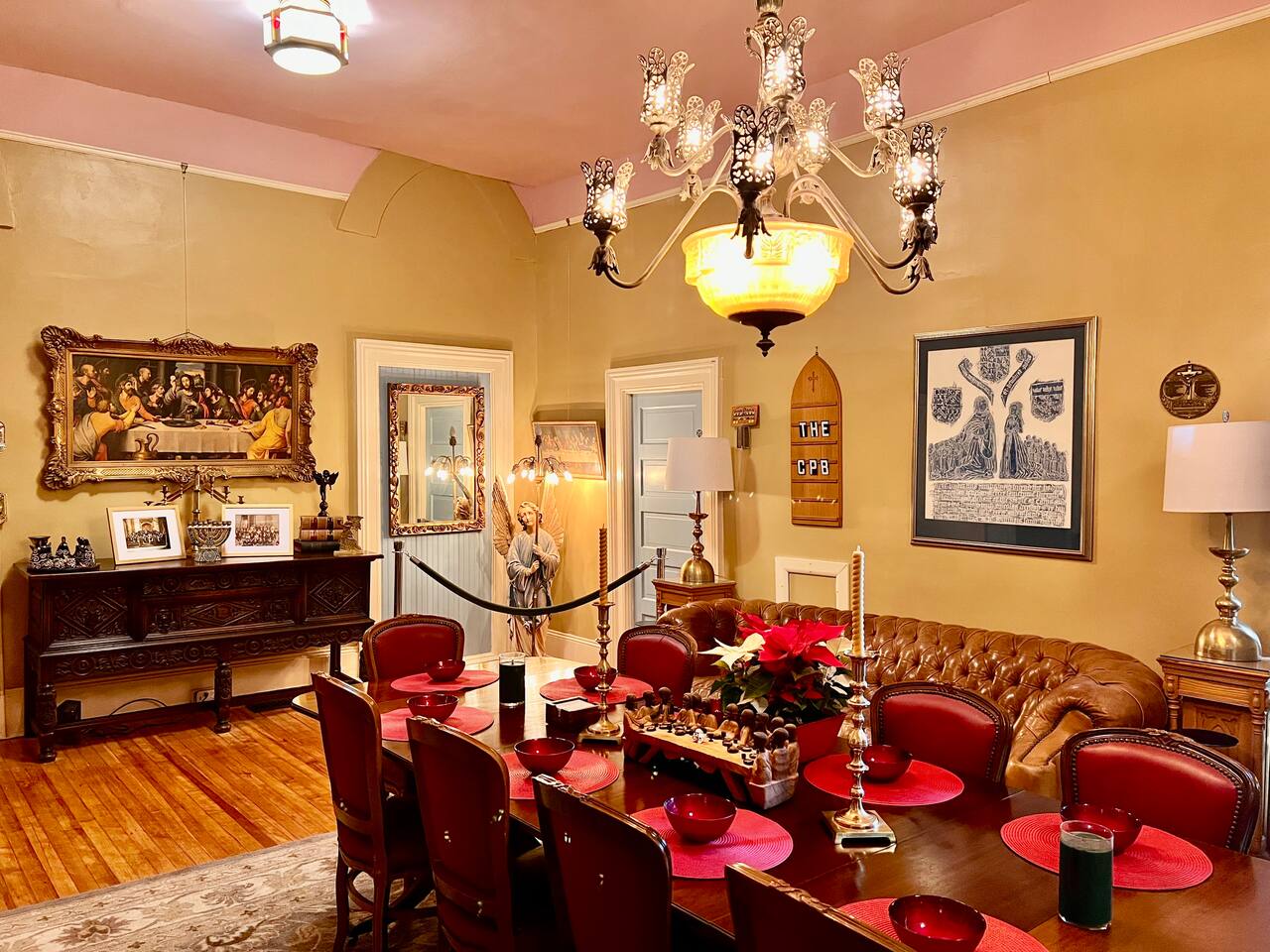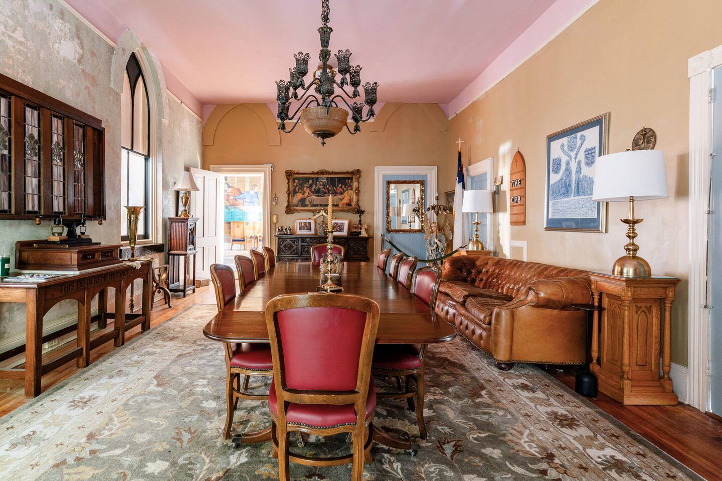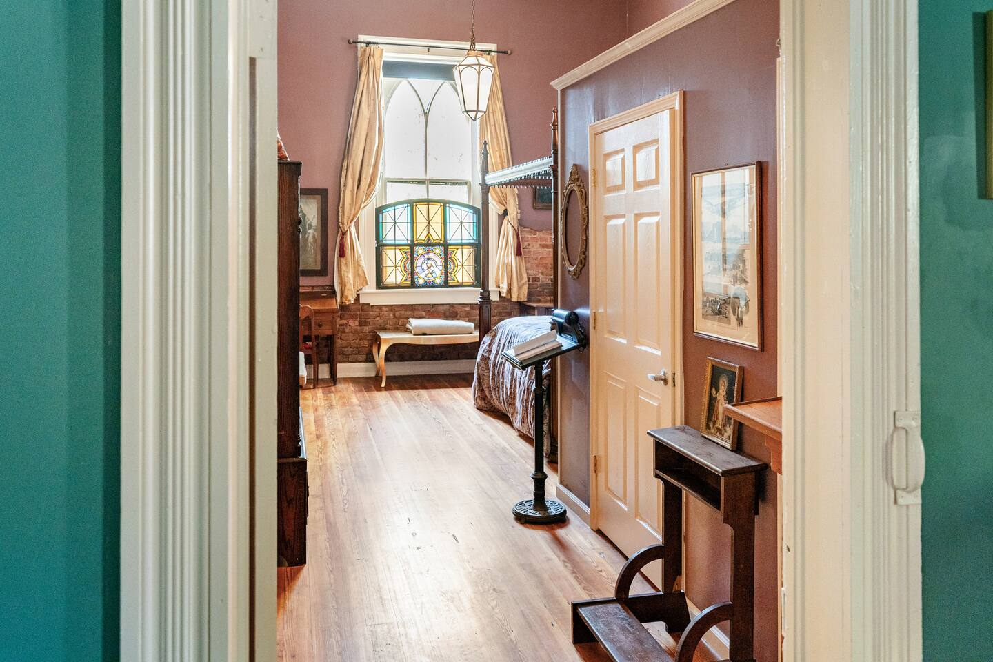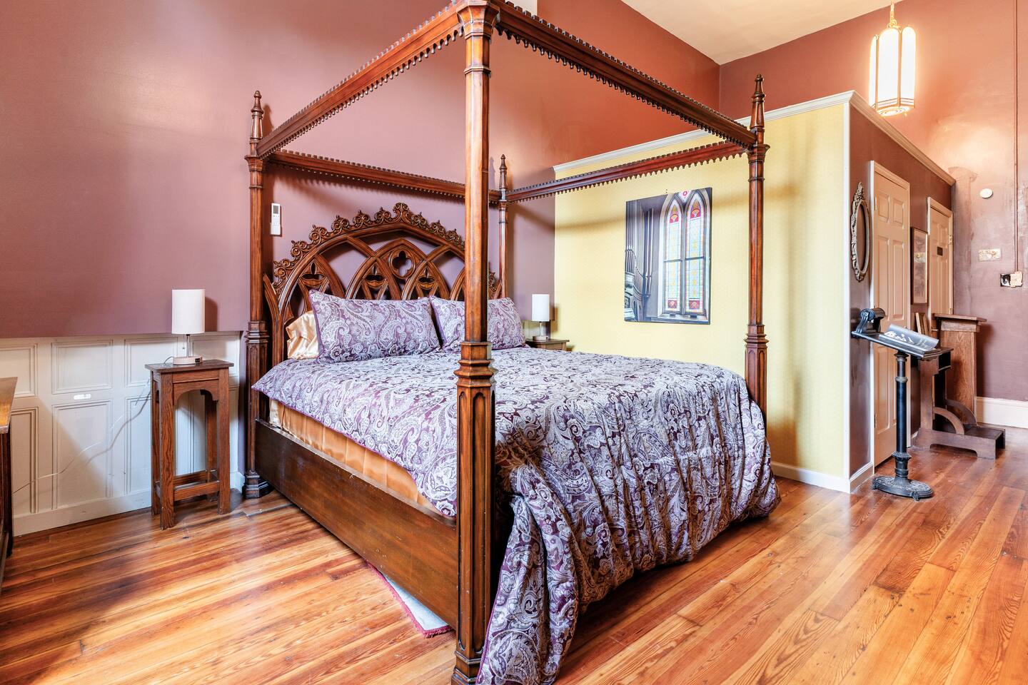 In the "City of Churches" the very first house of worship was constructed on this spot in the 1820's by the Presbyterians. Later in the 19th century, the Presbyterian built our amazing 9000 sqft Gothic Revival church. You'll have access to 3 bedrooms... one was the former Pastor Study, the second part of the former Nursery and the third a former sitting room. Each bedroom has its own climate control and large light-filled broken arch windows. The primary living space is 1500 sqft and served as the former Fellowship Hall. This space has a stage with a large 100" TV (that's right, 100"), ample seating, and even a bar (altar?). The dining room comfortably seats 8-10 at the 11' table. There is plenty of other seating in the room as well. The kitchen is massive and the counter space is overwhelming... typical of church kitchens designed to feed the masses. The appliances are brand-new (the fridge even makes ice cubes in multiple sizes!). The sanctuary is not part of the listing, but we can show you around or grant access at your own risk. It's something special :) ... a space graced by the oldest organ in Danville, an almost 200-year-old bell with a place in history, and amazing stained glass windows that includes an 8' cylindrical rose glass window.